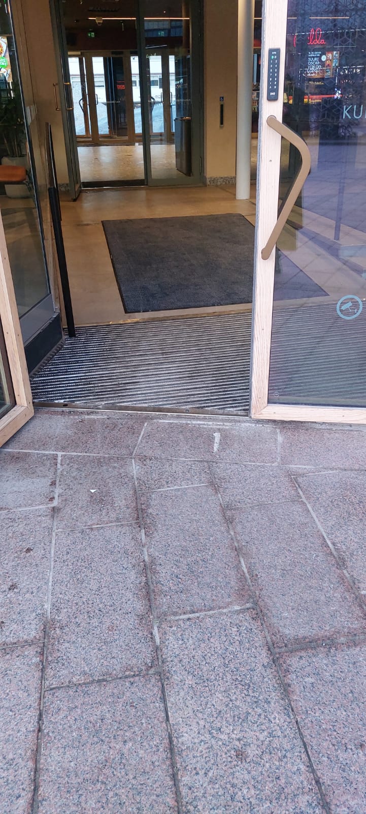 Hissiltä teatterin aulaan saapuessa on pieni kynnys.