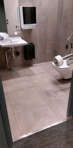 Elokuvateatterin wc-tiloihin ei ole esteetöntä käyntiä.
