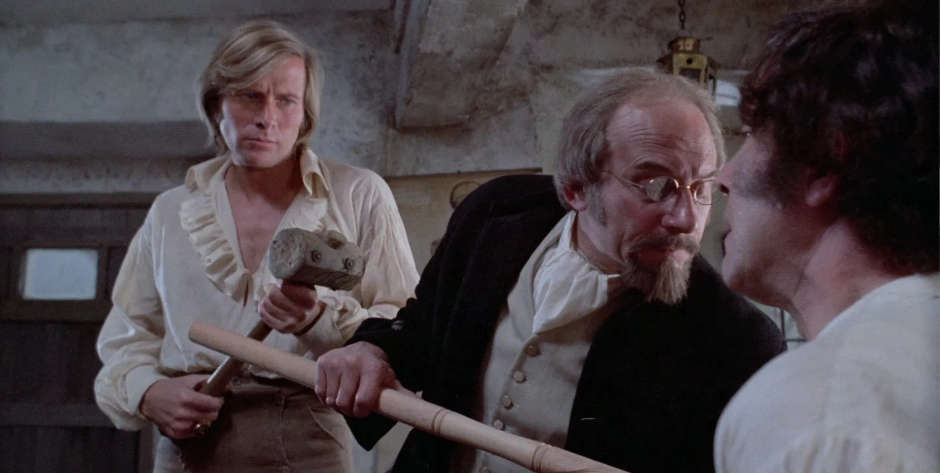 ”In a bid to vary its vampire formula from the by-then predictable Chris Lee Dracula series, Hammer came up with Captain Kronos: Vampire Hunter — Hammer cast newcomer [Horst] Janson as a dashing young swordsman with long blond locks and a wit as sharp as his ever-ready tapier. Accompanying the handsome bloodsucker-basher is John Carson as Captain K’s hunchbacked assistant who tends to Kronos’s arsenal of anti-vampire weaponry. Femme fright fave Caroline Munro is also on pulchritudinous view —