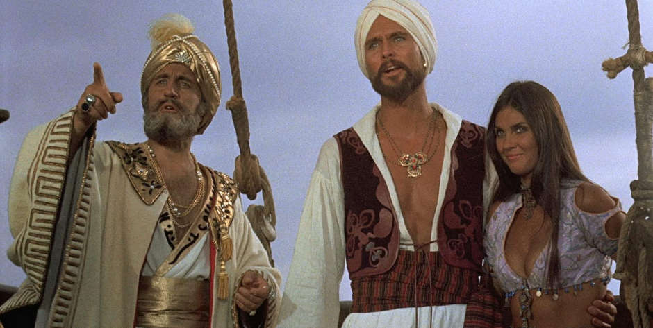 John Phillip Law makes a strong Sinbad, out to thwart the plans of the evil Prince Koura played by Tom Baker. — [Caroline Munro’s] presence is often a welcome diversion —